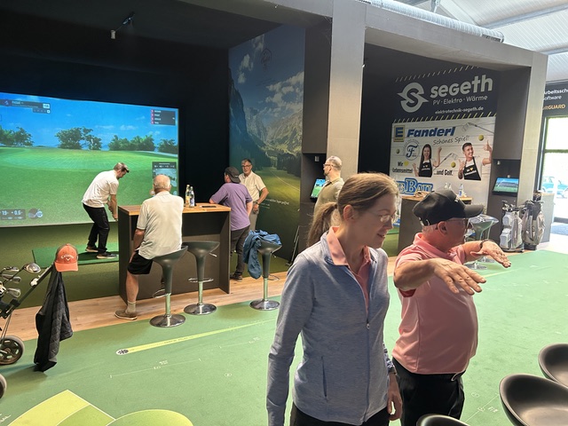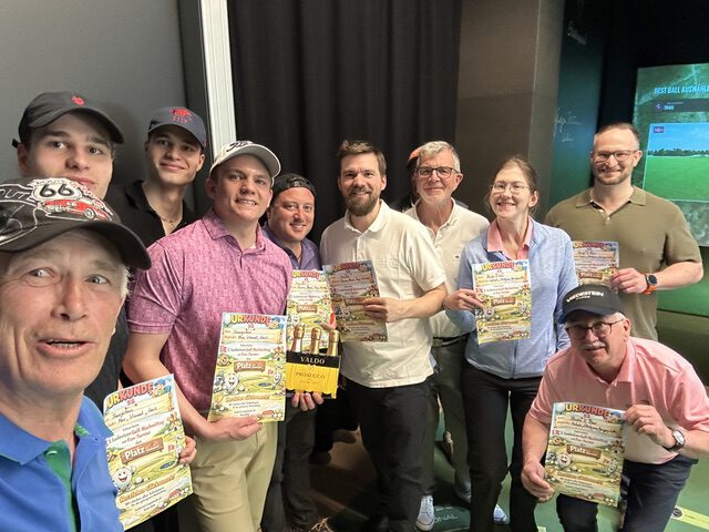 Nach dem begeisternden Vortrag unseres Bb d‘Artagnan über das Golfen auf der letzten Herrenkneipe am 10.4. sind seinem Aufruf zu dieser Veranstaltung insgesamt elf Mitspieler gefolgt. Gespielt wurde auf dem anspruchsvollen Kurs des Aurora International Golfkurses in Florida. Mitorganisatorin Nathalie Fischer hatte die Simulationstechnik dazu bestens im Griff. So dass nach einer kurzen Einweisung die drei „Flights“ zu jeweils vier Spielern und einem Dreier-Team vor ihren jeweiligen Leinwänden loslegen konnten. Während der folgenden 3 Stunden gelang es allen Spielern diesen „klitzekleinen“, Golfball immer mal wieder und immer öfter zu treffen und somit nützlich für das jeweilige Team zu sein. Beeindruckend war unser „Profispieler“ Maximilian von der Aureo-Danubia zu Ingolstadt, der seit Kindesbeinen an Golf spielt. Ihm zuzuschauen, wie er in der Lage ist, mit Wucht und Genauigkeit beim Abschlag den Ball bis über 200 Meter zu treiben, war beeindruckend.