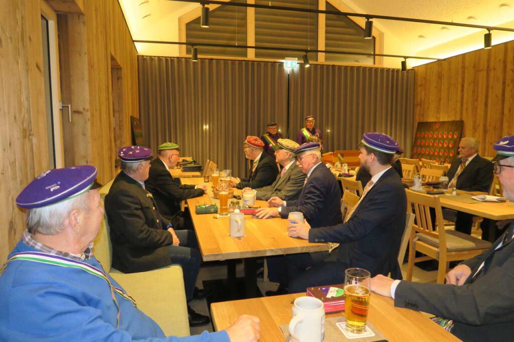 Nichtdestotrotz schmeckten Surhaxen sowie Bier vom Göttler. Die Veranstaltung war musikalisch sowie intellektuell auf gewohnt hohem Niveau. Unser Kistendrescher Ikarus sowie die Chargen BB Arcus mit dem Senior der Vindelicia, FB Archimedes, waren mit dem Redner des Festvortrages, über die deutschen Minderheiten in Europa nach dem Zerfall der österreichischen Doppelmonarchie sowie nach den beiden Weltkriegen, die Garanten dafür. Der traditionelle Landesvater bot wie immer einen schönen Abschluss des offiziellen Teils der Veranstaltung. Bei Wollwürscht und passenden Getränken blieben die meisten noch lange danach in Gesprächen vertieft im neuen Saal des Gasthauses